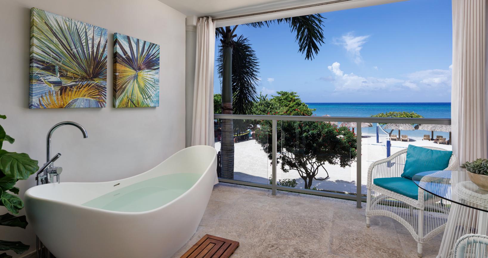 Στην παραδεισένια παραλία του Sandals Montego Bay, χαλαρώστε στο εντυπωσιακό Beach front One Bedroom Butler Suite with Tranquility Soaking Tub.
